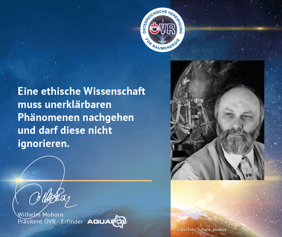 In dieser AQUAPOL-Jubiläumsbroschüre „Die Kräfte des Universums“ nach dem der gleichnamige Dokumentationsfilm von uns benannt wurde, verwendeten wir noch den Begriff „Tachionenenergie“ statt den Überbegriff Raumenergie. Dies deshalb, weil eine Eigenschaft, die Überlichtgeschwindigkeit z.B. bei den gravomagnetischen Wellenstrukuren – siehe in der Broschüre, eine wesentliche Eigenschaft sein muss. Ebenso hat angeblich auch Nikola Tesla diesen Begriff erwähnt. Da der Physiker Richard Feynman diesen Namen auch geprägt und definiert hat, entschlossen wir uns später den im deutschsprachigem Raum üblichen Begriff „Raumenergie“ zu wählen und genauer zu definieren, gemäß unserer Arbeitshypothese von 1992, mit der wir die AQUAPOL-Raumenergietech komplett ausentwickeln konnten.