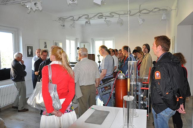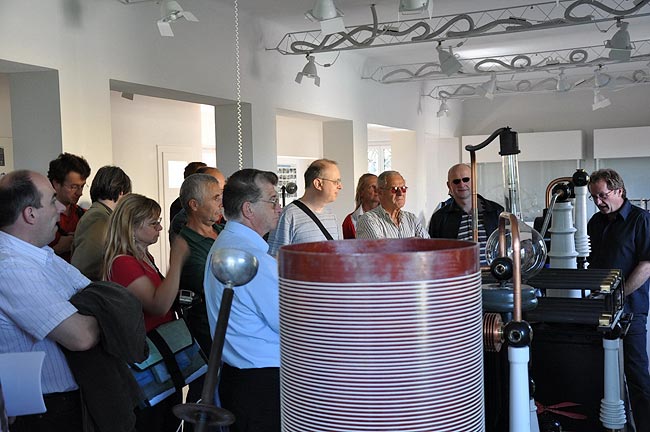 Nach einem gemeinsamen Mittagessen ging's auf ins Tesla Museum Gallspach, dessen hunderte Exponate unter dem Motto "Erlebnis Elektrizität" uns von em. Univ. Prof. Dr. Franz Pichler der Johannes-Kepler Universität in Linz näher gebracht wurde. Er empfing uns mit einem kurzen Lebenslauf Nikola Tesla`s, dessen Lebensweg vom Geburtsort Smiljan ausging und über Lehrjahre an den Universitäten Graz, Prag und Budapest nach den USA führte. (Smiljan befindet sich im heutiges Kroatien, damals KK Österreich - die wiederkehrende Frage, ob Österreicher oder nicht lässt sich hiermit aufklären). Prof. Dr. Franz Pichler, welcher auch Präsident der 2006 in Österreich neu gegründeten "Tesla Society Austria" ist, hat die Besichtigung samt Aktivierung der vorhandenen Experimente mit seinem Fachwissen und einer gesunden Portion Humor wirklich lebhaft gestaltet. Besonders begeistert waren die Teilnehmer natürlich wieder einmal von den langen Funken des "Tesla Trafos" sowie der drahtlosen Energieübertragung nach Tesla auf kurze Distanz. Das Museum und das Institut liegen in etwa 250 Meter Entfernung und wurde parallellaufend besichtigt.