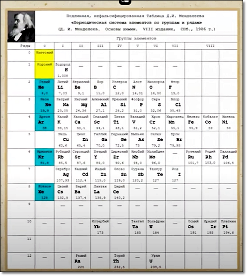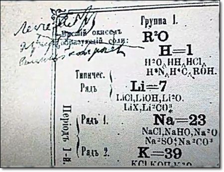 2002 kam die originale Tabelle des Periodensystems aufgrund einer Dissertation, welche in einer russischen wissenschaftlichen Zeitschrift erschien, wieder ans Licht!