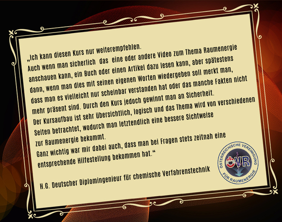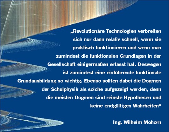 Die ÖVR liefert als einzige deutschsprachige Raumenergie-Organisation einen Fernkurs zum Thema “Energie der Zukunft”. Der Kurs erfordert weder akademisches Studium noch Ingenieurstudium. Er ist so aufgebaut, dass es jedermann mit durchschnittlicher Allgemeinbildung und starkem Interessean Alternativen und der Wahrheitsfindung erlaubt, ihn zu machen.