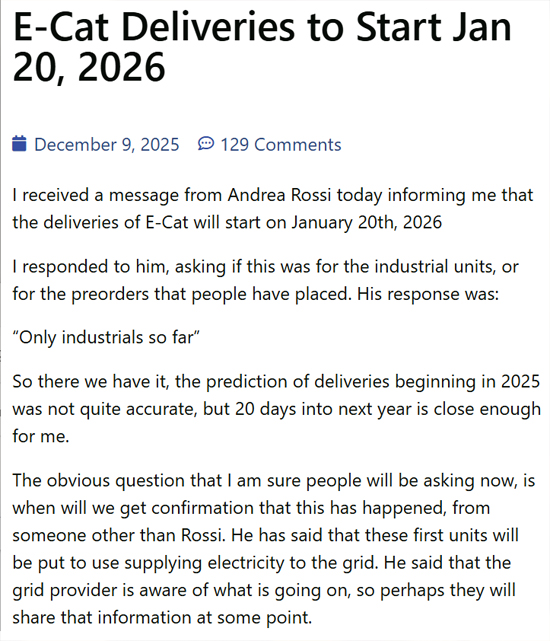 Die nachfolgenden News sind von Frank Iceland von der E-Cat World