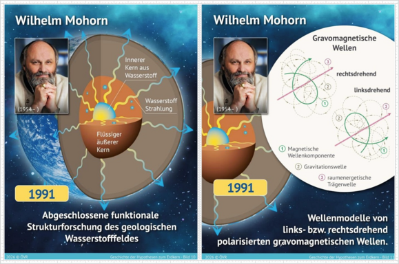 Durch die intensive funktionale Grundlagenforschung, die ich ab 1991 alleine machte, erforschte ich den irdischen (Geo-) Gravomagnetismus, der durch die Raumenergie beim Durchdringen der Erde entstand (Hypothese). Daraufhin entwickelte ich 2 weitere verschiedene Antennentypen, die dieses Wasserstofffeld der Erde empfangen konnten. Die Energiewellenstrukturforschung ergab jene Wellenmodelle, wie sie in der vorigen Grafik dargestellt sind. Mehr in meinem Buch: „Die Raumenergie - das decodierte Rätsel“.
