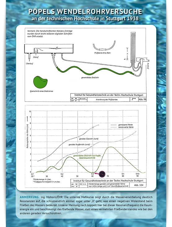 Ein toller Versuch an der technischen Hochschule in Stuttgart (1938), wo normale gerade Rohre (Glas, Kupfer) und kupferne Drallrohre a la Viktor Schauberger eingesetzt wurden, ergab Erstaunliches: