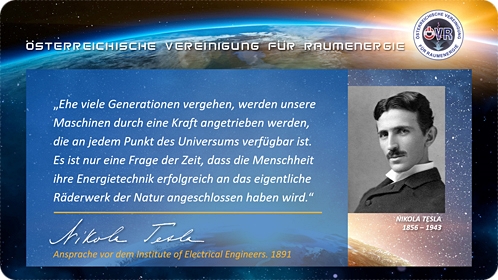 Nur gemeinsam schaffen wir die raschere Einführung der ultimativen Energie der Zukunft, wie es das Genie Nikola Tesla 1891 schon vorausgesagt hat: